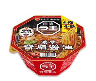 日清食品独自の3層めん製法が進化して実現したこだわりの中太ストレートめんと、厳選素材に「超特選再仕込み醤油*」を使用したスープが濃厚うまい、ラーメン好きにはたまらない一杯です。